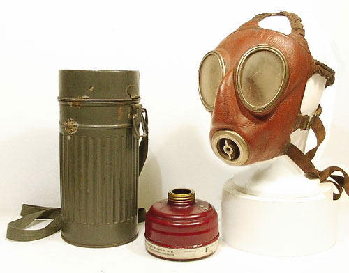Leder B-Maske von DITMAR (Wiener Metallwarenfabrik) vom August 1940 mit Auer Filter. Diese Maske wurde 2005t in Island verkauft und war nach Angabe des Verkaeufers im 2. Weltkrieg beim Daenischen Wiederstand in Verwendung |