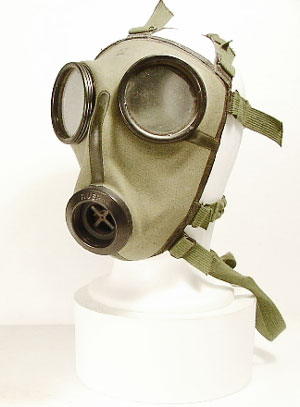 | Vollmaske 735, 1954, bis auf das leicht geaenderte Anschluss-Stuck und den Maskenschnitt (Naehte sind seitlich vom Auge) baugleich wie GM-30 |