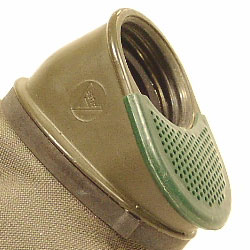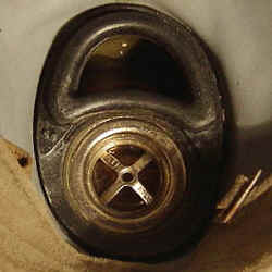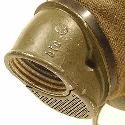 | Anschluss und Zahnschutz sind 1944 gefertigt (ohne die damals ueblichen Nuten), das Ausatemventil stammt aber aus Nachkriegsfertigung. Draeger verwendete auch Anschluss-Stuecke aus Kriegsfertigung |