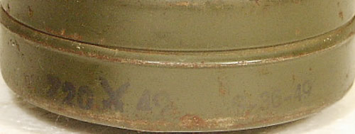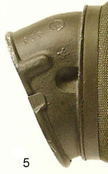 112 (Hersteller?) waren braeunlicher als die spaeteren (Vorkammerdeckel von 3) Es gibt auch graue Metallteile auf GM30 Masken (2) allerdings bisher nur auf S-Masken gefunden. Ob das beabsichtigt ist oder Lack sich verfaerbt hat ist nicht bekannt. Ungewoenlich ist auch die eingestantzte "1" auf einem sehr fruehen Anschluss stueck(4) |