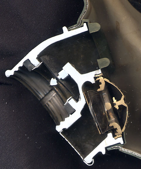 | Schnitt durch das Augenglas, Fassung und Klarscheibe mit Sprengring |