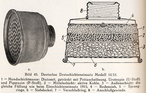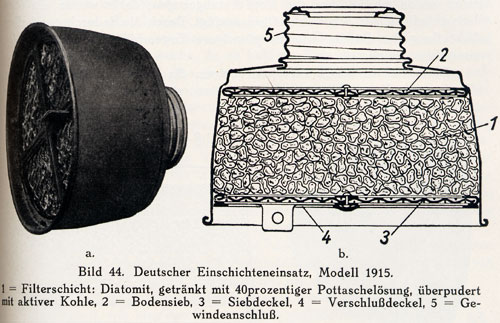 keine Ventile. Die ersten GM-15 wurden aus der Huelle des abgeschossenen französischen Luftschiffes "Alsace" hergestellt. Danach wurde ein mit einer Gummischicht (200g/m˛) vesehener feinmaschiger Baumwollmanko verarbetet. Als dann die Gummivorraete zur Neige gingen wurden die Ledermasken entwickelt Die seitlichen Ueberstaende beim Maskenkoerper waren sogenannte Wischfalten um die Augenglaeser vom Beschlag zu reinigen. Aehnlich der MK.I. |
