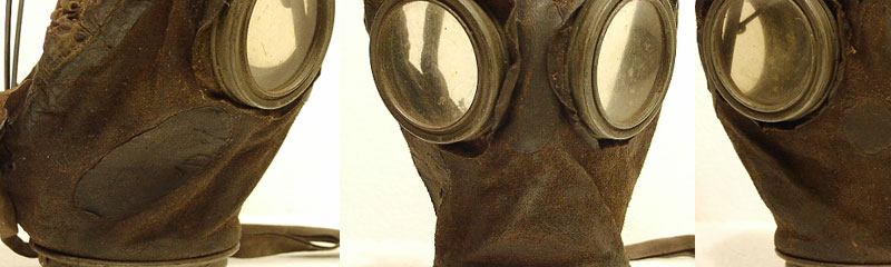 Maske aus geoeltem Schafsleder. Nach dem Krieg wurden die Masken mit einem