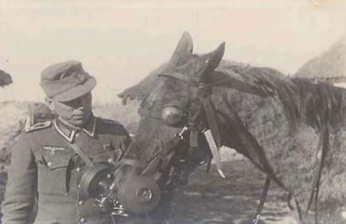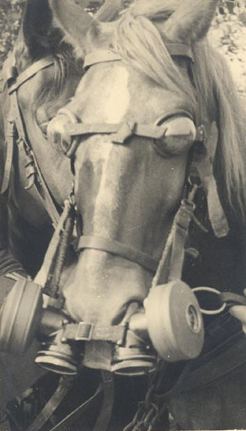 blauer Markierung fuer linkes und rechtes Auge. Welche Brille bei der Pferdegasmaske 38 verwendet wurde ist nicht bekannt |