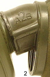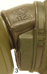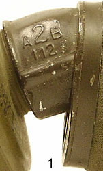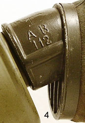 112 (Hersteller?) waren braeunlicher als die spaeteren (Vorkammerdeckel von 3) Es gibt auch graue Metallteile auf GM30 Masken (2) allerdings bisher nur auf S-Masken gefunden. Ob das beabsichtigt ist oder Lack sich verfaerbt hat ist nicht bekannt. Ungewoenlich ist auch die eingestantzte "1" auf einem sehr fruehen Anschluss stueck(4) |