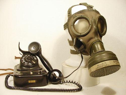 S-Maske/Telefon, Draeger Maske ohne RL-Kenn Nummer und ohne WaA Stempel, das Mikro ist bei diesem Typ fix eingebaut und nicht abschraubbar wie bei den Fernmeldermasken. Gasmaskenbuechse original Lackierung in hellgrau gestempelt RL1-38/5 und S-Filter RL1-40/73 |