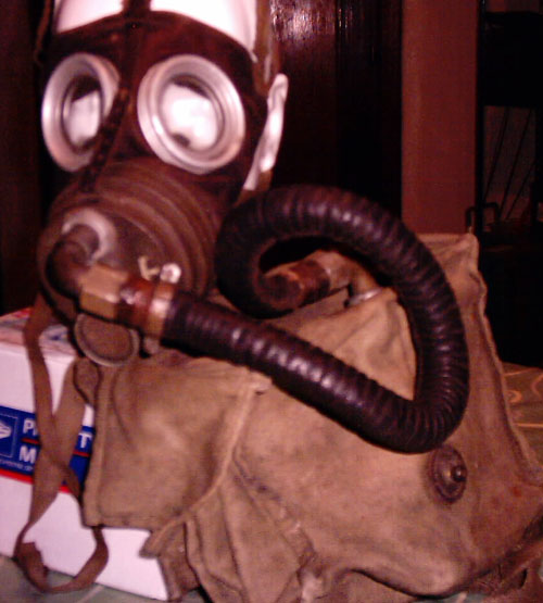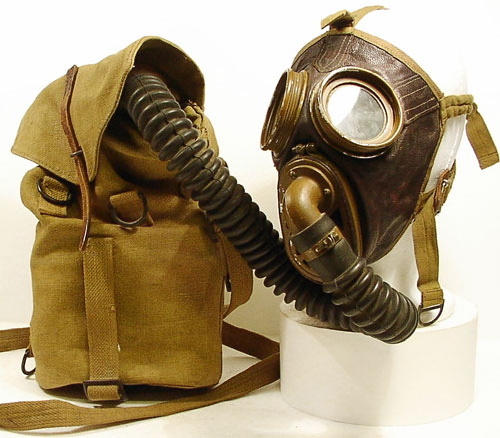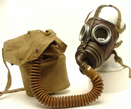 | Interessante Variante einer M-1924 von Pirelli mit Sacic Faltenschlauch, belgischer Filterbuechse und selbstgenaehter Tasche nach Belgischem Muster. Im Original- zustand hatten diese Masken einen Lederschlauch, einen anderen Filter und eine andere Tasche. War wahrscheinlich nur in Belgien im Einsatz |