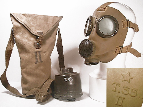 Die T.35 wurde von 1935 bis 1942(??) aus khaki-farbigem Gummi mit sehr