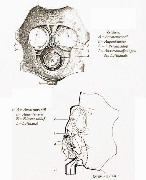 Baenderung No.4 Marks I oder II Der Standard Mk. IV (2.Modell) wurde auch in small, normal und large hergestellt, es gab aber auch noch das "Special T." Modell in extra small, small, large und extra large für Personen denen das Standard Modell nicht passte und fuer Brillentraeger. Der Mk IV-Special T. MIC wurde in in den Groessen small und large hergestellt und war für Telefonisten und Funker (unterschiedliche Mikrofone und Stecker) Das 2.Modell hatte meist die Baenderung No.4 Marks III Der Mk IV Service Respirator wurde von ca. 1928 bis 1939 gebaut und dann vom Mk V abgelöst wurde aber bis nach dem 2.Weltkrieg bei der Armee und den Zivilschutzverbaenden weiterverwendet. Gummischlaeuche ohne Stoffueberzug wurden ab 1941 hergestellt und wurden bei Reparaturen auch bei den Mk IV verwendet Je nach Verwendungszweck wurden verschiedene Filter verwendet |